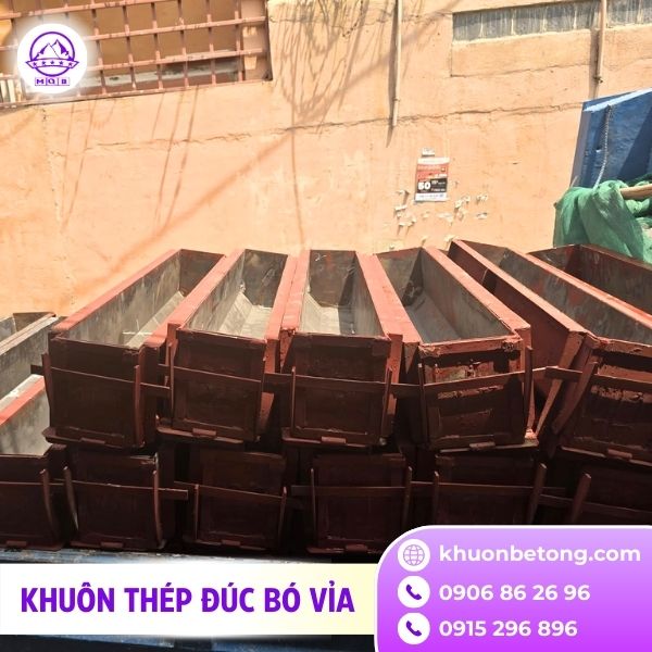 Khuôn được chế tạo từ thép tấm SS400 hoặc CT3 dày 5-6mm, hàn gia cố khung xương và thanh chống biến dạng. Thiết kế gồm: