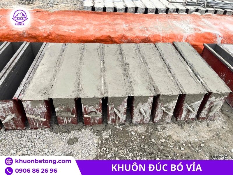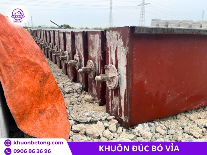 Bề mặt trong được mài nhẵn hoặc sơn epoxy chống dính, giúp tháo khuôn sạch sẽ mà không cần búa gõ mạnh. Một bộ khuôn tiêu chuẩn dài 1 m, cao 15–25 cm, rộng đáy 12–18 cm thường nặng 18–28 kg đủ chắc chắn nhưng vẫn 2 người có thể mang vác.
