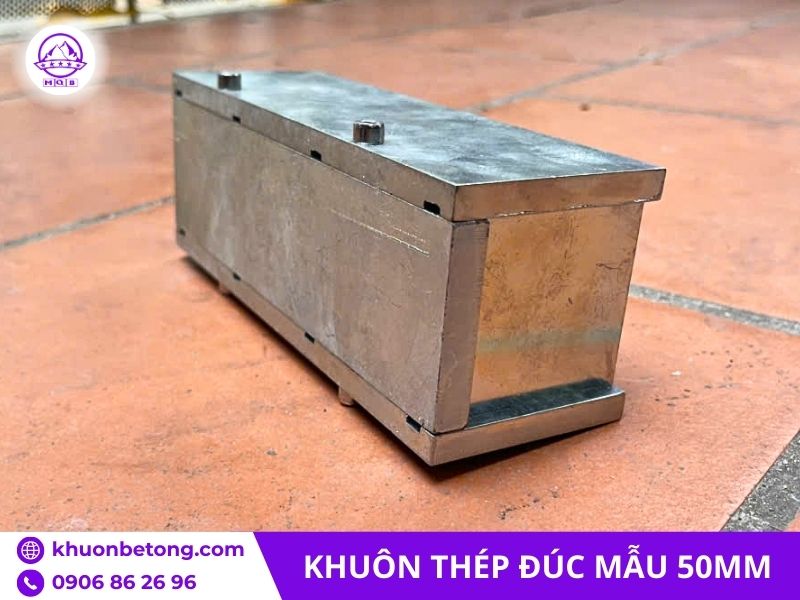 Khuôn được chế tạo từ thép không gỉ SUS304 hoặc thép carbon cao cấp Q235 với độ dày thành 3–5mm, chịu lực ép cao mà không bị biến dạng. Bề mặt nội thất được gia công CNC đánh bóng, phủ lớp chống dính chuyên dụng, giúp mẫu bê tông tươi dễ dàng tháo ra mà không cần dụng cụ phụ trợ. Tuổi thọ thực tế đạt 5.000–10.000 chu kỳ đúc (tương đương 5–7 năm sử dụng hàng ngày), vượt xa khuôn nhựa (chỉ 200–500 chu kỳ) và giảm đáng kể chi phí thay thế hàng năm.