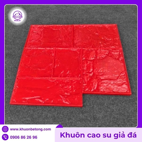 Khuôn in bê tông giả đá bằng cao su đóng vai trò trung tâm trong quy trình này. Chúng được thiết kế với các đường vân chìm nổi tinh xảo, tái hiện chính xác từng khe nứt, mạch đá tự nhiên. Khi áp khuôn lên bê tông tươi và tạo lực ấn đều, hỗn hợp bê tông sẽ lấp đầy các chi tiết nhỏ nhất, mang lại bề mặt hoàn thiện sắc nét, chống trơn trượt và chịu lực tốt.