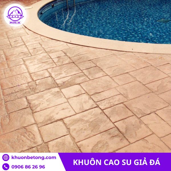 Khuôn cao su dễ thao tác hơn vì trọng lượng vừa phải, bám tay chắc, ít trơn khi có vữa dính vào mặt dưới. Độ mềm giúp thợ dễ canh mép giữa các lần ép, giảm đường nối. Khi thi công các mảng lớn như sân vườn resort, lối dạo công viên, viền hồ bơi hoặc tường phong cách tự nhiên, khuôn cao su giữ được sự thống nhất và hạn chế sai số. Điều này làm tăng giá trị thẩm mỹ của bề mặt hoàn thiện, nhất là trong các dự án cảnh quan cao cấp.