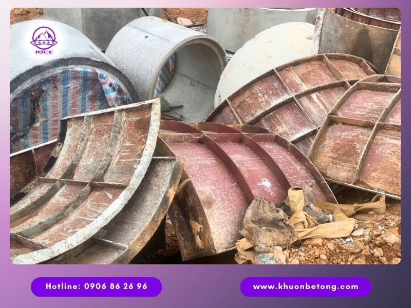 • Ván khuôn cống tròn: Đường kính 300-2500mm, gồm 2-6 mảnh ghép nửa vòng, chiều dài đoạn 1-2.5m, thường có đầu âm dương định hình.